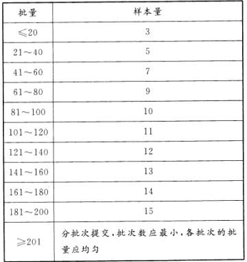 解析 根据检验批的批量按下表确定样本量