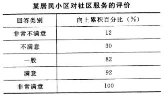 问题 某社区服务满意度研究中,调查人员在某居民小区抽样调查100户,得到下表所列调查结果,其中回答“满意”的占()。