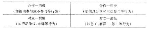解析 劳动关系氛围的两个维度可将其分成四种类型,不同类型的劳动关系氛围在企业中有着不同员工行为的表现方式。 。 员工减压的措施包括以下几个方面:①改善组织的工作环境和条件,减轻或消除恶劣的工作条件给员工带来的压力;②从企业文化氛围上帮助员工提高心理保健能力,学会缓解压力,自我放松;③在组织制度、程序上帮助减轻员工压力,加强过程管理。 冲突的预防和疏导包括:①制定完善的规章制度,防止制度疏漏、职责不清等因素引起的消极性冲突。②加强团队之间、个人之间以及个人与团队之间的信息和意见的沟通,减少隔阂和分歧;完善企业内部沟通、信息系统。③劳资冲突往往是企业人力资源管理制度或发展战略出现的矛盾和问题的集中反映,切不可头痛医头,简单压制。 一般而言,员工援助计划主要由三部分构成:①处理造成问题的外部压力源,即减少或消除不适当的管理和环境因素;②处理压力所造成的反应,即情绪、行为及生理等方面症状的缓解和疏导;③改变个体自身的弱点,即改变不合理的信念、行为模式和生活方式等。