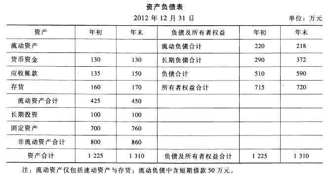 某企业2012年取得销售收入净额2000万元(其中赊销收入净额1500万元),营业净利率20%。该企业的资产负债表有关资料如下:根据上述资料,回答...
