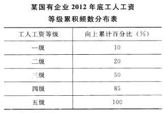 某国有企业工人的工资水平按有关规定从低到高分为一级至五级。根据下表中该企业按2012年底工人工资状况整理的累积频数分布表,该企业工资等级为四级的工人占全体...