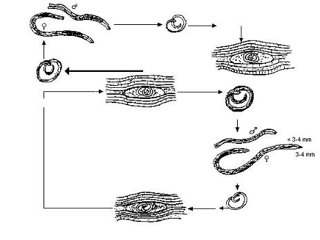 问题 如图所示,下列关于旋毛虫病的病原学特点的描述,正确的是 ( )