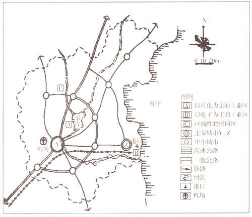 问题 我国某大城市,市域内北部为丘陵地区,南部为平原地区。市域范围内现状有两个主要城 市Y和Z,两城市相距约60km,另外有若干中小城市。城市Y为市域的中心城市,规划人口 规模为100万,城市Z为临海的港口城市,规划人口规模为40万,其他的中小城市人口规模为 10~20万不等。现状有二条国家级的高速公路南北向穿过市域。为协调市域城镇发展,配合 全市的经济社会发展要求,提出了以石化为主的工业区A、以电子为主的工业区B、区域性物 流园区C及4D级新机场等的规划布局意见,同时还规划了环形高速公路等内容。 【问题】 根据提供的规划示意图(图1),指出该规划在项目布局和道路交通方面存在的主要问题。