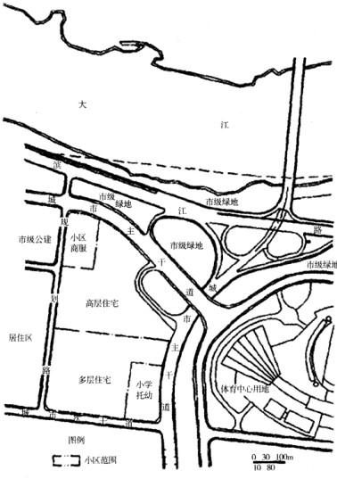 问题 某房地产开发商拟在滨河地段规划建设一居住小区,用地面积约18hm2,提出了一个用地布局初步设想,如图4所示。 【问题】 试指出该用地设想中主要用地功能及布局存在的问题,并提出修改完善意见(不必作图)