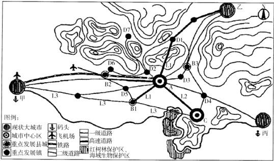 问题 A市位于我国东南部沿海丘陵地区。北部为山区,中部为山前平原,南部为滨海平原。 在周边城镇群中定位为滨海旅游城市。 区域概况:该市周边分布有甲、乙、丙三个城市,其中甲市位于A市西侧,距A市约200km,为我国东南部沿海重要的港口城市,并已建成国际机场一座;乙市在A市北侧,距A市约140km,是我国重要的加工业产业基地;丙市为港口城市,距A市约160km。 自然条件:该市自然生态环境较好,风景旅游资源丰富,其中北部部分山体列入国家自然保护区,国家4A级风景旅游区;沿海地区中部海岸为约2km的平坦的沙质岸线,沙软潮平,水质清澈,附近有海岛;西部主要为礁石海岸,但水深较浅;东部沿海为我国著名的红树林及海洋生物保护区。 为充分发挥地域区位优势,进一步推动A市经济发展,根据A市在城镇群内滨海旅游城市的定位,结合A市城市发展现状,该市编制了以产业发展为主的市域城镇体系规划,主要内容如下: (1)等级结构:分为A、B、C、D四级。A为市域中心城市;C为市域副中心城市,未来城市发展区域;B为重点发展城镇;D为一般城镇。 (2)职能结构及产业定位: ①A为市域中心城市,是全市政治、经济、文化中心。 ②C市为现状县城,拟作为未来城市的副中心,为未来城市发展方向,定位为县级市,建设新型工业区,并布局大型区域电厂(装机容量4 8 0万KW)一座。 ③B1、B2、B3为现状县城,拟作为重点发展市域副中心城市,其中B1定位为工业型城市,并拟建设大型深水码头;B2定位为商贸城市;B3拟建设为东南地区重要的加工制造基地。 ④D1为重点旅游城镇,为旅游集散中心,D2、D3、D4、D5重点发展工业。 (3)交通规划: ①为把该市建设成重要的港口城市,拟在B1进行建设深水港码头。 ②考虑到A市现状基础设施和城镇依托条件较好,拟定于市域西侧建设机场。 ③为促进区域协调发展规划完善道路交通体系网,拟加快环形公路网建设,重点建设L1、L2、L3三条道路,其中L1为连接B1、A及D1的高速公路,L2为B2、A及C的高速公路,L3为连接甲、B1及C的滨海道路,以加强各城镇之间的联系。 【问题】 请指出:该规划在区域协调发展、城镇及产业布局、交通等方面中的不合理之处,并简要提出改进意见。