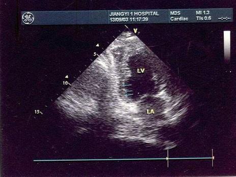 患者有心梗史,如图所示最可能诊断是?(?)A.室壁瘤形成B.室间隔呈反"S"型C.扩张型心肌病  D.真性室壁瘤E.限制性心肌病