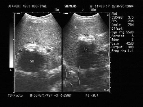 问题 男,56岁,上腹部经常剧烈疼痛不适,皮肤巩膜黄染,加重1周。声像图如图所示,诊断为?(?)