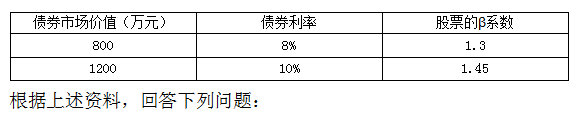 解析 根据资本资产定价模型: 债券市场价值为800万元时,公司股票的资本成本=6%+1.3×(16%-6%)=19%。 债券市场价值为1200万元时,公司股票的资本成本=6%+1.45×(16%-6%)=20.50%。