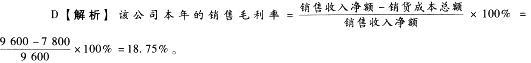 问题 某股份有限公司2013年财务报表的有关数据如下:年初资产总额为8000万元,所有者权益为5400万元;年末资产总额为8400万元,所有者权益为5600万元;本年实现的销售收入净额为9600万元,净利润为800万元,相应的销货成本总额为7800万元。 根据上述资料,回答下列问题: 该公司本年的销售毛利率为( )。