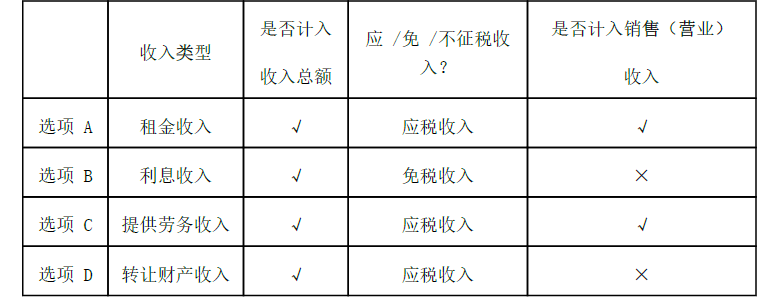 选项 A.出租设备收入60万元 B.国债利息收入40万元 C.技术服务收入700万元 D.出售房产收入400万元
