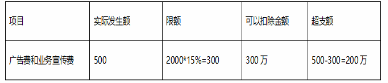 解析 本题考查企业所得税税前扣除的主要项目。 广告费和业务宣传费(不超过当年销售或营业收入15%的部分准予扣除,超过部分准予在以后纳税年度结转扣除)