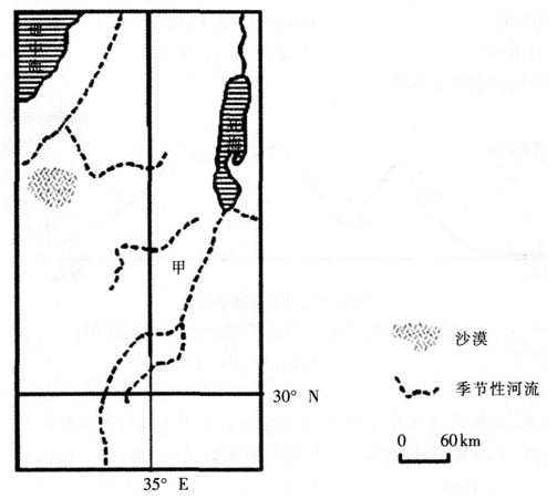 每年夏季,下图示区域内自南向北年降水量由约200mm增至500mm左右,沙漠地区年降水量仅50mm左右。据此回答1~3题。 解决该区域农业用水紧...