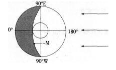 选项 A.赤道上正午物体的影子向南 B.地球的公转位置接近近日点 C.漠河的白昼一年中最长 D.M点正值早晨6点