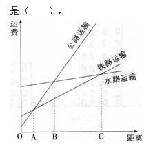 选项 A.OA区间采用铁路运输 B.AB区间采用铁路运输 C.BC区问采用水路运输 D.C点之外采用公路运输