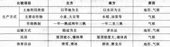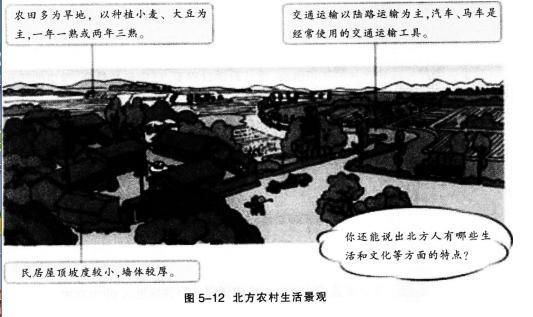 阅读关于“北方与南方的人文差异”的图文资料,按要求完成教学设计任务。 材料一《义务教育地理课程标准(2011年版)》中的相关内容标准要求:“用事例说...