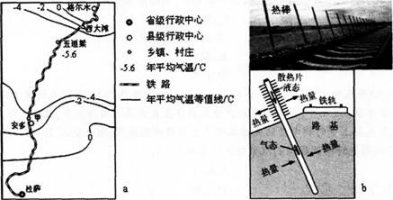 问题 阅读图文材料,完成下列要求。 多年冻土分为上下两层,上层为夏季融化,冬季冻结的活动层,下层为多年冻结层。我国的多年冻土主要分布于东北高纬度地区和青藏高原高海拔地区。东北高纬地区多年冻土南界的年平均气温在一10~1℃,青藏高原多年冻土下界的年平均气温约为-3.5°~-2℃。 由我国自行设计、建设的青藏铁路格(尔木)拉(萨)段成功穿越了约550千米的连续多年冻土区.是全球目前穿越高原、高寒及多年冻土地区的最长铁路。多年冻土的活动层反复冻融及冬季不完全冻结,会危及铁路路基。青藏铁路建设者创造性地提出了“主动降温、冷却路基、保护冻土”的新思路.采用了热棒新技术等措施。图a示意青藏铁路格拉段及沿线年平均气温的分布.其中西大滩至安多为连续多年冻土分布区。图b为青藏铁路路基两侧的热棒照片及其散热工作原理示意图。热棒地上部分为冷凝段,地下部分为蒸发段,当冷凝段温度低于蒸发段温度时.蒸发段液态物质汽化上升,在冷凝段冷却成液态,回到蒸发段,循环反复。 (1)分析青藏高原形成多年冻土的年平均气温比东北高纬度地区低的原因。(8分) (2)根据热棒的工作原理,判断热棒散热的工作季节(冬季或夏季),简述判断依据;分析热棒倾斜设置(图b)的原因。(8分)