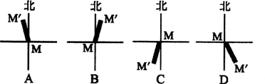 问题 根据北京时间2012年10月25日23时33分,我国第16颗北斗导航卫星发射升空。 北斗导航卫星发射升空时,智利首都圣地亚哥(33°26′S,70°40′W)旗杆杆影(图中MM,所示)的朝向为(  )。