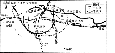 解析 从图中可以看出,甲处邻近滨河风景区,环境优美;靠近京珠高速公路和石黄高速公路,交通便利。