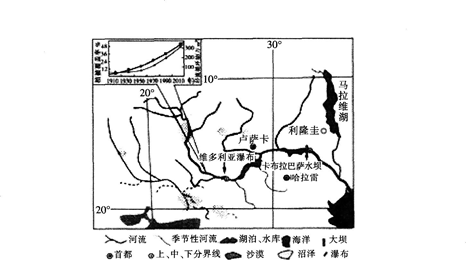 解析 据图判断,该河流为非洲的赞比西河。该河地处热带草原气候区,故该河及其水系以雨水补给为主。