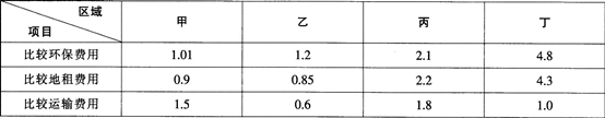 根据比较费用,即一个区域某一生产要素相对于另一区域的该要素的比值。读甲、乙、丙、丁四地三种生产要素相对另一个参照区域的比较费用表, 某集团公司对四地...