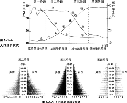 解析 (1)教材分析: 这部分教材节选自鲁教版普通高中地理课程标准实验教科书必修2第一章的第二节第二目。“人口增长模式”是教学的重点和难点,也是学习人口增长的基础知识。教材采取形式多样的表现方式,充分发挥图像的作用,首先展示人口增长模式示意图,使学生对此形成感性认识,通过文字说明加深学生对内容的理解。 (2)教学过程要点: 教师带领学生复习人口出生率、人口死亡率、人!口自然增长率的概念以及三者之间的关系。教师强调:人口自然增长率=人口出生率-人口死亡率。一般用%。表示。就全世界范围看,一般是人口自然增长率与经济发展成负相关。设问:根据“三率”的不同,可把世界人口增长分为哪几种模式 各增长模式的人口增长状况和主要特征如何 代表国家有哪些 学生对照教材内容,自主探究。 教师展示“人口增长模式”图,并请学生思考分析:人口增长的几个不同阶段,可以体现“三率”的变化趋势是怎样的 各增长阶段的增长状况、主要特征、原因、代表国家、人口增长模式各是怎样的 并完成下列表格: 学生思考分析后把表格填充完整。 教师强调:中国由于实行了有效的计划生育政策,人口自然增长率比较低,正在向“低低低”的模式过渡。 接着归纳:人口增长不同阶段,不单在“三率”和人口总数上有变化,在人口年龄结构上也会表现出不同。如果按性别把一个国家或地区的人口分为两大栏,用各年龄分段作为纵坐标,用各年龄组的人口在总人口中所占的百分比作为横坐标,就会组成人口年龄结构金字塔。人口增长模式不同。人口年龄结构金字塔的形状也不同。 学生结合图1—1—5“人口年龄结构金字塔”,讨论:人口年龄结构金字塔的形状与人口增长模式有什么关系 学生讨论的同时,教师巡视指导,及时搜集信息,并提醒学生要充分利用资料,学会从资料中获取有用信息。 针对学生讨论的结果,教师进行归纳。 教师展示中国人口普查、人口年龄结构金字塔图,请学生分析:我国人口年龄结构金字塔形状发生变化的原因有哪些 学生读图分析后,得出结论:外凸是由于人口增长高峰;内凹是由于自然灾害和计划生育。最后教师进行总结:世界人口增长是有规律可循的,不同时代人口增长速度不同,人口增长模式取决于人口出生率、死亡率和自然增长率,人口年龄结构金字塔能形象地说明人口增长模式。