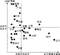 根据“资源诅咒”是发展经济学中的一个著名命题,其基本理念是丰富的资源趋于阻碍经济发展,而非促进经济发展。读我国部分省区矿产资源丰富度与经济发展相关性示意图...