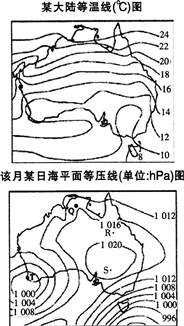 根据读“某大陆等温线(℃)图”和“该月某日海平面等压线(单位:hPa)图” 图中所示气温和气压状况最可能出现在(  )。A.1月 B.4月 C....