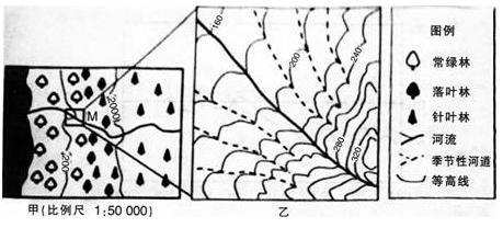 问题 下图中甲为某区域自然景观分布示意图.乙为M地等高线地形图.读图回答第14-15题。 乙图的地貌类型是(  )。查看材料