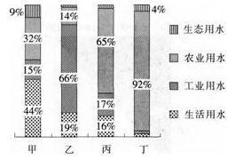 问题 图为2008年我国甲乙丙丁四个省级行政区的用水结构图。读图回答12~13题。 甲、乙、丙、丁代表的行政区最可能是(  )。查看材料
