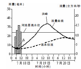 问题 下图是2008年7月18日至20日某河流在某一站点的流量曲线示意图,读图完成第下题。 如果未来在相同的降水状态下,该地流量曲线的洪峰点向左偏移,最可能的原因是()