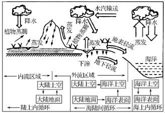 问题 绘制水循环示意图(要求绘制海上内循环,陆地内循环,海陆间循环的环节,标注各环节名称和图名,并简要说明运用该图指导学生学习水循环的教学步骤和教学意义。