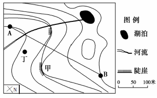 问题 下图为某山地的局部等高线图,图中等高距为20米,AB为空中游览索道。读图完成第下题。 甲处为陡崖,其相对高度最有可能是( )。