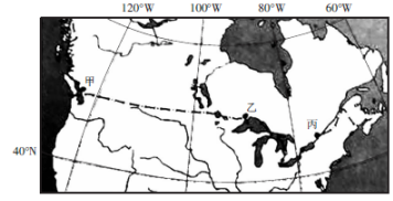 问题 下图为美国,加拿大部分港口分布示意图,读图完成第下题。 甲乙丙三个港口封冻期由长到短排序正确的是( )。