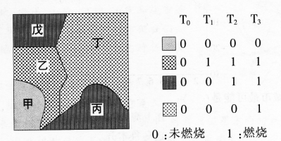 问题 下图是利用地理信息系统将某地区一次森林大火事件从T0至T3,四个时间的卫星影像加以分析绘制而成的“森林大火燃烧蔓延示意图”。图中右侧的资料是该地区甲、乙、丙、丁、戊区域T0至T3,四个时间的森林燃烧情况。读图完成问题。 利用地理信息系统分析“森林大火燃烧蔓延示意图”的主要方法是()。