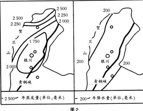 问题 阅读下列材料。回答问题。 材料一100多万年前的第四纪更新世时期,银川平原是一个由断陷盆地形成的浩瀚大湖。直到黄河形成,沧桑巨变,逐渐出现冲积湖积平原。平原顺黄河流向,自西南向东北倾斜,其中银川一带是平原的沉降中心,地势低洼。银川湖泊湿地众多,一个众所周知的说法便是“七十二连湖”,而这些湖沼和引黄灌溉区的开发有很大关系。图1示意银川平原湿地分布,图2示意银川附近址.区年蒸发量和年降水量分布。 材料二20世纪60年代和90年代,银川湿地的储水量一度大幅下降。如今从黄河灌区逶迤而来的一条条水渠。将湖泊湿地重新连通,塞土湖城风采得以重现。 问题: (1)结合材料一分析说明银川湖泊湿地众多的原因。(6分) (2)简要分析20世纪60年代和90年代银川湿地的储水量一度大幅下降的原因。(4分) (3)银川市实施“生态立市”战略,计划在市郊建立一个面积大约是西湖5倍的人工湖,试从地理学的角度评价这一举措是否合理?(6分)