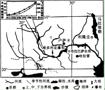 解析 据图判断,该河流为非洲的赞比西河。该河地处热带草原气候区,故该河及其水系以雨水补给为主。