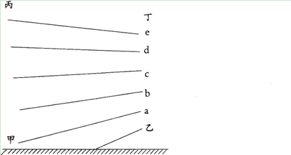 下图为对流层大气某要素等值面垂直分布图. 若a.b、c、d,e为不同气压值,则甲、乙、丙、丁四地的气流运动方向是(  )。A.甲→乙→丁→丙→甲 ...