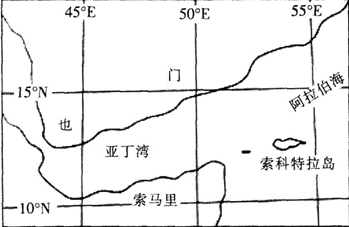 问题 索科特拉岛曾经与非洲的索马里半岛相连,岛上有许多奇特的动植物。下图是索科特拉岛位置图。 某年七月,一艘油轮在该岛以东附近海域泄漏大量原油,油污带可能漂向(  )。
