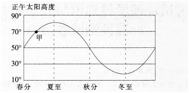 问题 某地理学习兴趣小组对某地每天的正午太阳高度进行了一段时间的持续观测与记录, 正午太阳高度位于甲点时,(  )