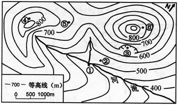 问题 5月初,几位“驴友”到我国东南部某山区旅游。下图为该山区地形示意图,图中①~⑥处为露营和观景的备选地点。 最适宜观日出的地点是(  )。