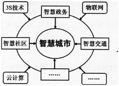 下图示意新一代信息技术支撑下的智慧城市。 智慧城市建设对城市发展最重要的作用是(  )。A.调整地域结构 B.加速人口集散 C.扩大空间规模 ...