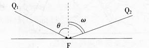 读下图。某经线上点F,虚线为过该点的地面垂直线,Q、Q2是F点夏至日两个不同时刻的太阳光线,且经线、虚线和太阳光线位于同一平面上。 若F点的地方时是...