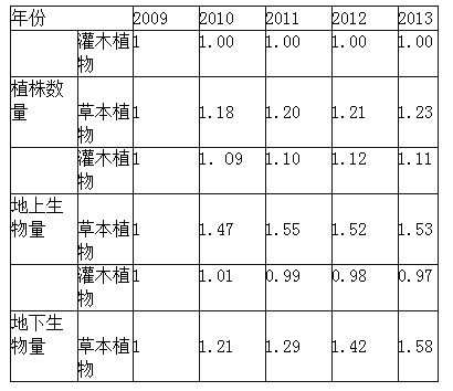 问题 人类活动导致大气中含氮化合物浓度增加,产生沉降,是新出现的令人担忧的全球变化问题。一科研小组选择受人类干扰较小的某地,实验模拟大气氮沉降初期对植被的影响。实验地植被以灌木植物为主,伴生多年生草本植物。下表数据为实验地以2009年为基数,2010--2013年试验中植被的变化值(测量时间为每年9月30日)。 实验期间植被变化表现为()。 ①生物量提高②生物量降低 ③植株密度改变④植被分布改变