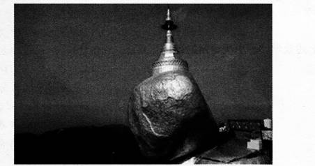 大金石是缅甸一处著名的佛教朝拜圣地,它是一块耸立在悬崖边上的花岗岩巨石,海拔1100米。石头表面贴有金箔,石上建有一座7.3米的佛塔,完成题。 ...