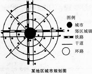 相关内容:下图,地区,城市规划,示意图,读图,图中,信息,城市,服务功能,铁路线,干道,环路,区域