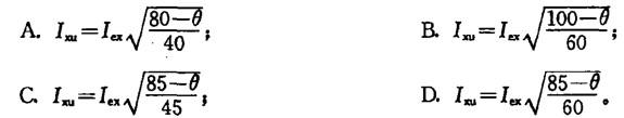 问题 穿墙套管的选择。 当穿墙套管装在户内,环境温度高于+40℃,但不超过+60℃时,穿墙套管的持续允许电流会降低,它的降低有一修正的计算公式,下面所列式子正确的是()(θ是周围实际环境温度)。