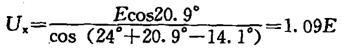 问题 某500kV超高压架空线路长度为400km,电磁波的传播速度为3X105km/s。系统按有限容量考虑,系统电源阻抗与波阻抗的比值为0.383。 若在线路末端装设一组髙压并联电抗器,补偿度按60%考虑,此时线路末端工频稳态电压是始端电压E的()倍。