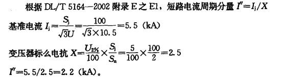 问题 计算某水电厂髙压厂用电系统短路电流(短路点为厂用电变压器二次侧出口)。已知:①电厂采用发电机一变压器单元接线,厂用电变压器接于机端、容量2000kVA,阻抗值为5%,二次侧电压10.5kV;②同时运行的高压电动机总容量小于1500kW。 短路点短路电流周期分量广为()。 A.2.3kA; B.2.2kA; C.2.1kA; D.2.Ok