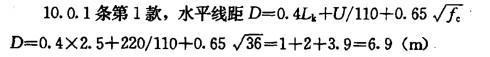 问题 送电线路导线布置,单回路多用水平排列,双回路则多用垂直排列,若某220kV线路直线铁塔,设计用于1Omm冰区,最大使用档距700m,其最大弧垂为36m,绝缘子串长2.5m。 若单回路铁塔导线水平排列,其线间距离应不小于()。