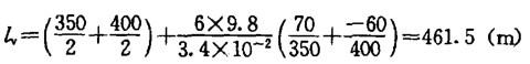 问题 无论有无髙差,一个档距中电线的重量,将从其弧垂最低点分别传递到两侧杆塔上,该最低点到杆塔的距离称为该杆塔该侧的垂直档距(l1v或l2v),杆塔总的垂直档距lv=l1v+l2v。 某直线塔位于斜坡上,l1=350m,h1= 70m,l2=400m,h2=—60m,σ=58.8N/mm2,7=3.4X1O-2 N/(m*mm2)。 其垂直档距为()。